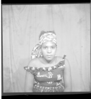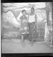 149. EAP449/2/27/149 Reference (shelfmark): EAP449/2/27/149 Title: Two little girls standing, on the right wearing a black dress and hairstyle, on the left a camisole and black pagne in the studio. Collection Area: Endangered Archives Programme Languages: Not applicable Date Range: 2nd half od the 20th century Extent: 1 TIFF image
