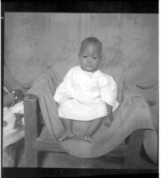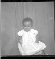 187. EAP449/2/27/187 Reference (shelfmark): EAP449/2/27/187 Title: Full shot of a little boy in a white boubou in the studio. Collection Area: Endangered Archives Programme Languages: Not applicable Date Range: 2nd half od the 20th century Extent: 1 TIFF image