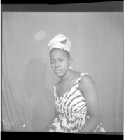 306. EAP449/2/27/306 Reference (shelfmark): EAP449/2/27/306 Title: A woman in a dress, headscarf, and necklace sitting in profile in the studio. Collection Area: Endangered Archives Programme Languages: Not applicable Date Range: 2nd half od the 20th century Extent: 1 TIFF image