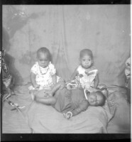 354. EAP449/2/27/354 Reference (shelfmark): EAP449/2/27/354 Title: Three little girls in dresses, one laying down in profile in front of the other two wearing a necklace in the studio. Collection Area: Endangered Archives Programme Languages: Not applicable Date Range: 2nd half od the 20th century Extent: 1 TIFF image