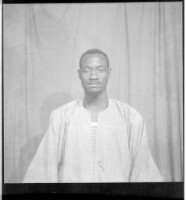 360. EAP449/2/27/360 Reference (shelfmark): EAP449/2/27/360 Title: A man in a boubou sitting facing forward in the studio. Collection Area: Endangered Archives Programme Languages: Not applicable Date Range: 2nd half od the 20th century Extent: 1 TIFF image