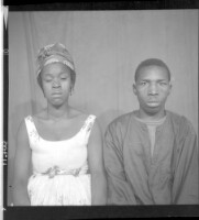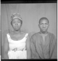 403. EAP449/2/27/403 Reference (shelfmark): EAP449/2/27/403 Title: A man in a boubou next to a woman in a dress sitting in the studio. Collection Area: Endangered Archives Programme Languages: Not applicable Date Range: 2nd half od the 20th century Extent: 1 TIFF image