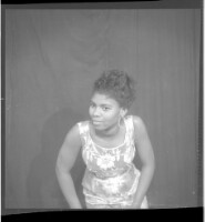 409. EAP449/2/27/409 Reference (shelfmark): EAP449/2/27/409 Title: A girl in a dress bent over in profile in the studio. Collection Area: Endangered Archives Programme Languages: Not applicable Date Range: 2nd half od the 20th century Extent: 1 TIFF image