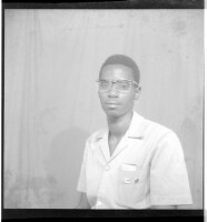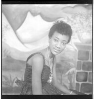 449. EAP449/2/27/449 Reference (shelfmark): EAP449/2/27/449 Title: A young girl sitting wearing a white boubou and hair in a bun and earrings in the studio. Collection Area: Endangered Archives Programme Languages: Not applicable Date Range: 2nd half od the 20th century Extent: 1 TIFF image
