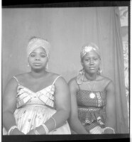 450. EAP449/2/27/450 Reference (shelfmark): EAP449/2/27/450 Title: Full shot of two women standing, the taller one wearing a camisole and pagne and headscarf and the little one wearing a black dress. Collection Area: Endangered Archives Programme Languages: Not applicable Date Range: 2nd half od the 20th century Extent: 1 TIFF image
