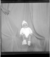 Full shot of a couple, on the left a woman sitting wearing a black camisole and hairstyle and necklace, with a man sitting wearing a white long sleeved shirt in the studio.