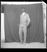5. EAP449/2/28/5 Reference (shelfmark): EAP449/2/28/5 Title: A man wearing a suit with a tie and glasses standing in profile in the studio. Collection Area: Endangered Archives Programme Languages: Not applicable Date Range: 2nd half od the 20th century Extent: 1 TIFF image