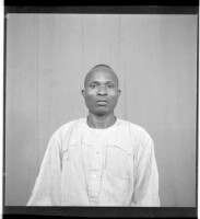 97. EAP449/2/28/97 Reference (shelfmark): EAP449/2/28/97 Title: A man wearing a white boubou sitting face-forward in the studio. Collection Area: Endangered Archives Programme Languages: Not applicable Date Range: 2nd half od the 20th century Extent: 1 TIFF image