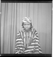 99. EAP449/2/28/99 Reference (shelfmark): EAP449/2/28/99 Title: A woman wearing a pagne, head wrap, and necklace sitting face-forward in the studio. Collection Area: Endangered Archives Programme Languages: Not applicable Date Range: 2nd half od the 20th century Extent: 1 TIFF image