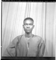 102. EAP449/2/28/102 Reference (shelfmark): EAP449/2/28/102 Title: A man wearing a black boubou sitting face-forward in the studio. Collection Area: Endangered Archives Programme Languages: Not applicable Date Range: 2nd half od the 20th century Extent: 1 TIFF image