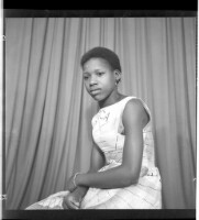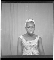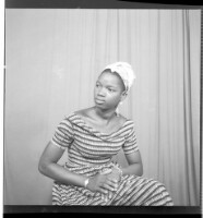 105. EAP449/2/28/105 Reference (shelfmark): EAP449/2/28/105 Title: A woman wearing a dress and head wrap sitting face-forward in the studio. Collection Area: Endangered Archives Programme Languages: Not applicable Date Range: 2nd half od the 20th century Extent: 1 TIFF image