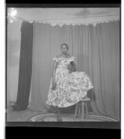 192. EAP449/2/28/192 Reference (shelfmark): EAP449/2/28/192 Title: A young woman wearing a dress standing face-forward with her foot on a stool in the studio. Collection Area: Endangered Archives Programme Languages: Not applicable Date Range: 2nd half od the 20th century Extent: 1 TIFF image