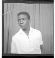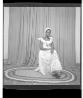 194. EAP449/2/28/194 Reference (shelfmark): EAP449/2/28/194 Title: A young woman wearing a head wrap standing in profile in the studio. Collection Area: Endangered Archives Programme Languages: Not applicable Date Range: 2nd half od the 20th century Extent: 1 TIFF image