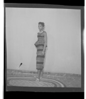 231. EAP449/2/28/231 Reference (shelfmark): EAP449/2/28/231 Title: A young woman wearing a black and white dress standing in profile in the studio. Collection Area: Endangered Archives Programme Languages: Not applicable Date Range: 2nd half od the 20th century Extent: 1 TIFF image