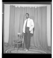 232. EAP449/2/28/232 Reference (shelfmark): EAP449/2/28/232 Title: A man wearing a shirt, pants, and tie standing in profile with his hand in his pocket in the studio. Collection Area: Endangered Archives Programme Languages: Not applicable Date Range: 2nd half od the 20th century Extent: 1 TIFF image