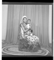 236. EAP449/2/28/236 Reference (shelfmark): EAP449/2/28/236 Title: A woman wearing a pagne sitting in profile with a baby in the studio. Collection Area: Endangered Archives Programme Languages: Not applicable Date Range: 2nd half od the 20th century Extent: 1 TIFF image