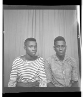 238. EAP449/2/28/238 Reference (shelfmark): EAP449/2/28/238 Title: Two men, one wearing a shirt and the other wearing a t-shirt sitting face-forward in the studio. Collection Area: Endangered Archives Programme Languages: Not applicable Date Range: 2nd half od the 20th century Extent: 1 TIFF image