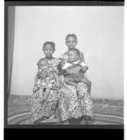 246. EAP449/2/28/246 Reference (shelfmark): EAP449/2/28/246 Title: Two young women wearing dresses, each with a baby, sitting face-forward in the studio. Collection Area: Endangered Archives Programme Languages: Not applicable Date Range: 2nd half od the 20th century Extent: 1 TIFF image