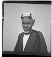 248. EAP449/2/28/248 Reference (shelfmark): EAP449/2/28/248 Title: An old man wearing a black boubou and hat sitting in profile in the studio. Collection Area: Endangered Archives Programme Languages: Not applicable Date Range: 2nd half od the 20th century Extent: 1 TIFF image