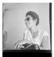 249. EAP449/2/28/249 Reference (shelfmark): EAP449/2/28/249 Title: A girl wearing a t-shirt and glasses sitting in profile in the studio. Collection Area: Endangered Archives Programme Languages: Not applicable Date Range: 2nd half od the 20th century Extent: 1 TIFF image