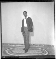 288. EAP449/2/28/288 Reference (shelfmark): EAP449/2/28/288 Title: A man wearing a shirt and glasses standing face-forward in the studio. Collection Area: Endangered Archives Programme Languages: Not applicable Date Range: 2nd half od the 20th century Extent: 1 TIFF image