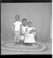 361. EAP449/2/28/361 Reference (shelfmark): EAP449/2/28/361 Title: A man wearing a jacket sitting face-forward with a boy and a young girl standing face-forward in the studio. Collection Area: Endangered Archives Programme Languages: Not applicable Date Range: 2nd half od the 20th century Extent: 1 TIFF image