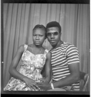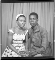362. EAP449/2/28/362 Reference (shelfmark): EAP449/2/28/362 Title: A man wearing a shirt and a woman wearing a dress and head wrap sitting in profile in the studio. Collection Area: Endangered Archives Programme Languages: Not applicable Date Range: 2nd half od the 20th century Extent: 1 TIFF image