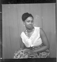 363. EAP449/2/28/363 Reference (shelfmark): EAP449/2/28/363 Title: A woman wearing a dress and pagne sitting in profile in the studio. Collection Area: Endangered Archives Programme Languages: Not applicable Date Range: 2nd half od the 20th century Extent: 1 TIFF image