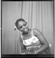 370. EAP449/2/28/370 Reference (shelfmark): EAP449/2/28/370 Title: A woman wearing a dress and glasses sitting in profile in the studio. Collection Area: Endangered Archives Programme Languages: Not applicable Date Range: 2nd half od the 20th century Extent: 1 TIFF image
