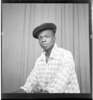 383. EAP449/2/28/383 Reference (shelfmark): EAP449/2/28/383 Title: A man wearing a shirt and hat sitting in profile in the studio. Collection Area: Endangered Archives Programme Languages: Not applicable Date Range: 2nd half od the 20th century Extent: 1 TIFF image