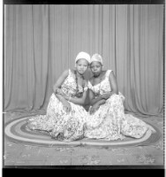 391. EAP449/2/28/391 Reference (shelfmark): EAP449/2/28/391 Title: Two women wearing dresses and necklaces sitting face-forward on a mat in the studio. Collection Area: Endangered Archives Programme Languages: Not applicable Date Range: 2nd half od the 20th century Extent: 1 TIFF image