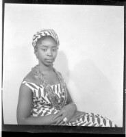 392. EAP449/2/28/392 Reference (shelfmark): EAP449/2/28/392 Title: A woman wearing a pagne and necklace sitting in profile in the studio. Collection Area: Endangered Archives Programme Languages: Not applicable Date Range: 2nd half od the 20th century Extent: 1 TIFF image