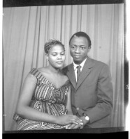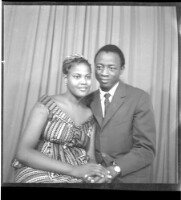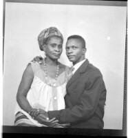 393. EAP449/2/28/393 Reference (shelfmark): EAP449/2/28/393 Title: A man wearing a suit and a woman wearing a pagne and head wrap sitting in profile in the studio. Collection Area: Endangered Archives Programme Languages: Not applicable Date Range: 2nd half od the 20th century Extent: 1 TIFF image