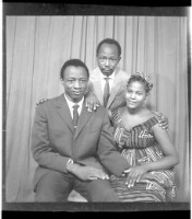 396. EAP449/2/28/396 Reference (shelfmark): EAP449/2/28/396 Title: Two men wearing suits, one standing face-forward and the other sitting face-forward with a woman wearing a dress in the studio. Collection Area: Endangered Archives Programme Languages: Not applicable Date Range: 2nd half od the 20th century Extent: 1 TIFF image