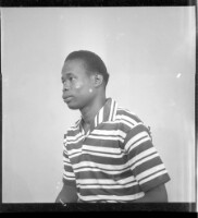412. EAP449/2/28/412 Reference (shelfmark): EAP449/2/28/412 Title: A man wearing a t-shirt sitting in profile in the studio. Collection Area: Endangered Archives Programme Languages: Not applicable Date Range: 2nd half od the 20th century Extent: 1 TIFF image