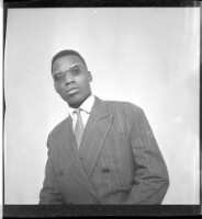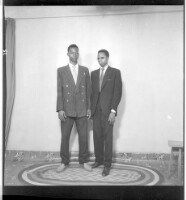 415. EAP449/2/28/415 Reference (shelfmark): EAP449/2/28/415 Title: Two men wearing suits, one with glasses standing in profile and the other standing face-forward in the studio. Collection Area: Endangered Archives Programme Languages: Not applicable Date Range: 2nd half od the 20th century Extent: 1 TIFF image