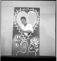 418. EAP449/2/28/418 Reference (shelfmark): EAP449/2/28/418 Title: A man wearing a shirt standing in profile behind a heart-shaped frame in the studio. Collection Area: Endangered Archives Programme Languages: Not applicable Date Range: 2nd half od the 20th century Extent: 1 TIFF image
