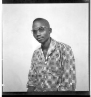 420. EAP449/2/28/420 Reference (shelfmark): EAP449/2/28/420 Title: A man wearing a shirt and glasses sitting in profile in the studio. Collection Area: Endangered Archives Programme Languages: Not applicable Date Range: 2nd half od the 20th century Extent: 1 TIFF image