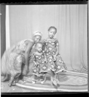 51. EAP449/2/28/51 Reference (shelfmark): EAP449/2/28/51 Title: Two little girls wearing dresses sitting face-forward and a woman crouching down in profile next to them in the studio. Collection Area: Endangered Archives Programme Languages: Not applicable Date Range: 2nd half od the 20th century Extent: 1 TIFF image