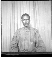 59. EAP449/2/28/59 Reference (shelfmark): EAP449/2/28/59 Title: A man wearing a boubou sitting face-forward in the studio. Collection Area: Endangered Archives Programme Languages: Not applicable Date Range: 2nd half od the 20th century Extent: 1 TIFF image