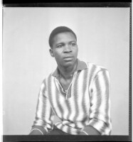 667. EAP449/2/28/667 Reference (shelfmark): EAP449/2/28/667 Title: A man wearing a black and white long-sleeved t-shirt sitting in profile in the studio. Collection Area: Endangered Archives Programme Languages: Not applicable Date Range: 2nd half od the 20th century Extent: 1 TIFF image