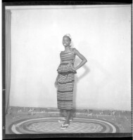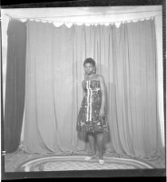 686. EAP449/2/28/686 Reference (shelfmark): EAP449/2/28/686 Title: A girl wearing a black and white dress standing in profile in the studio. Collection Area: Endangered Archives Programme Languages: Not applicable Date Range: 2nd half od the 20th century Extent: 1 TIFF image