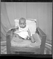 784. EAP449/2/28/784 Reference (shelfmark): EAP449/2/28/784 Title: A little girl wearing a dress sitting face-forward in a chair in the studio. Collection Area: Endangered Archives Programme Languages: Not applicable Date Range: 2nd half od the 20th century Extent: 1 TIFF image