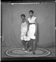 787. EAP449/2/28/787 Reference (shelfmark): EAP449/2/28/787 Title: Two girls both wearing shirts and skirts standing in profile in the studio. Collection Area: Endangered Archives Programme Languages: Not applicable Date Range: 2nd half od the 20th century Extent: 1 TIFF image