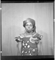 789. EAP449/2/28/789 Reference (shelfmark): EAP449/2/28/789 Title: A woman wearing a dress and head wrap sitting face-forward in the studio. Collection Area: Endangered Archives Programme Languages: Not applicable Date Range: 2nd half od the 20th century Extent: 1 TIFF image