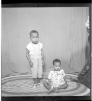 790. EAP449/2/28/790 Reference (shelfmark): EAP449/2/28/790 Title: A little boy wearing a shirt and overalls standing in profile next to a little girl wearing a dress and necklace sitting face-forward in the studio. Collection Area: Endangered Archives Programme Languages: Not applicable Date Range: 2nd half od the 20th century Extent: 1 TIFF image