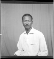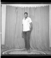 820. EAP449/2/28/820 Reference (shelfmark): EAP449/2/28/820 Title: A man wearing a shirt and pants standing face-forward in the studio. Collection Area: Endangered Archives Programme Languages: Not applicable Date Range: 2nd half od the 20th century Extent: 1 TIFF image