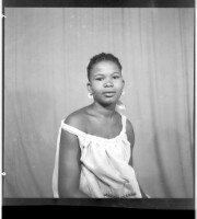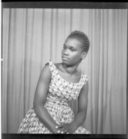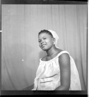 813. EAP449/2/28/813 Reference (shelfmark): EAP449/2/28/813 Title: A woman wearing a dress and head wrap sitting face-forward in the studio. Collection Area: Endangered Archives Programme Languages: Not applicable Date Range: 2nd half od the 20th century Extent: 1 TIFF image