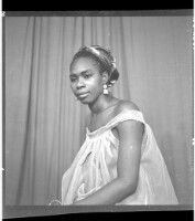 823. EAP449/2/28/823 Reference (shelfmark): EAP449/2/28/823 Title: A woman wearing a dress and head wrap sitting in profile in the studio. Collection Area: Endangered Archives Programme Languages: Not applicable Date Range: 2nd half od the 20th century Extent: 1 TIFF image