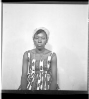 827. EAP449/2/28/827 Reference (shelfmark): EAP449/2/28/827 Title: A woman wearing a dress, head wrap, and necklace sitting face-forward in the studio. Collection Area: Endangered Archives Programme Languages: Not applicable Date Range: 2nd half od the 20th century Extent: 1 TIFF image